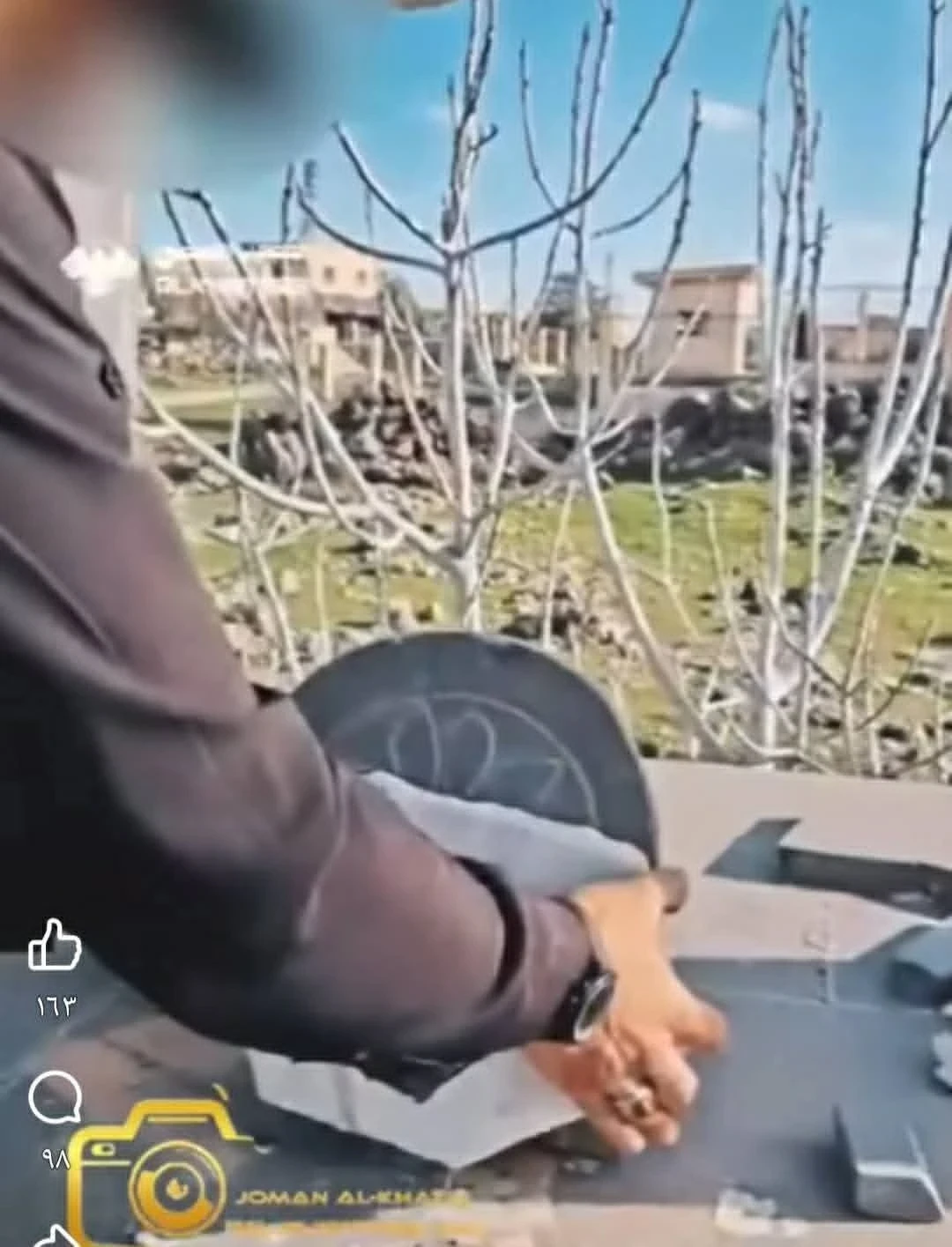 ويُظهر المقطع، الذي نُشر مرفقاً بشعار “الخطيب الحمصي”، شخصاً يرتدي زياً يُقال إنه تابع لجهاز الأمن الداخلي السوري وهو يضع قطعة رخام كُتبت عليها كلمة “درزي” فوق أحد القبور في القرية، على وقع أغنية دينية.